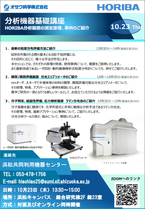 分析基礎講座2025「粒度分布評価・エリプソメーター・ラマン分光法」